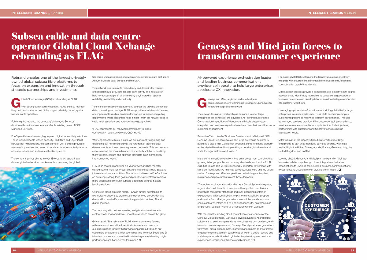 Grivner said:“ This rebrand of FLAG allows us to move forward with a clear vision and the flexibility to innovate and invest in our infrastructure in ways that provide unparalleled value to our customers and partners. With strong backing from our Board and 3i Infrastructure we are committed to delivering market-leading, highperformance solutions across the globe.” p