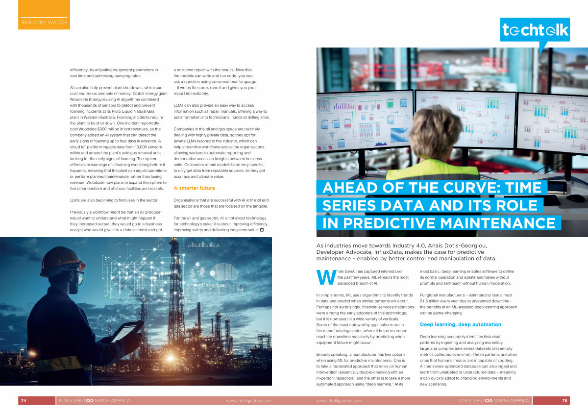 AI can also help prevent plant shutdowns, which can cost enormous amounts of money. Global energy giant Woodside Energy is using AI algorithms combined with thousands of sensors to detect and prevent foaming incidents at its Pluto Liquid Natural Gas plant in Western Australia. Foaming incidents require the plant to be shut down. One incident reportedly cost Woodside $ 300 million in lost revenues, so the company added an AI system that can detect the early signs of foaming up to four days in advance. A cloud IoT platform ingests data from 10,000 sensors within and around the plant’ s acid gas removal units, looking for the early signs of foaming. The system offers clear warnings of a foaming event long before it happens, meaning that the plant can adjust operations or perform planned maintenance, rather than losing revenue. Woodside now plans to expand the system to five other onshore and offshore facilities and vessels. a one-time report with the results. Now that the models can write and run code, you can ask a question using conversational language – it writes the code, runs it and gives you your report immediately.