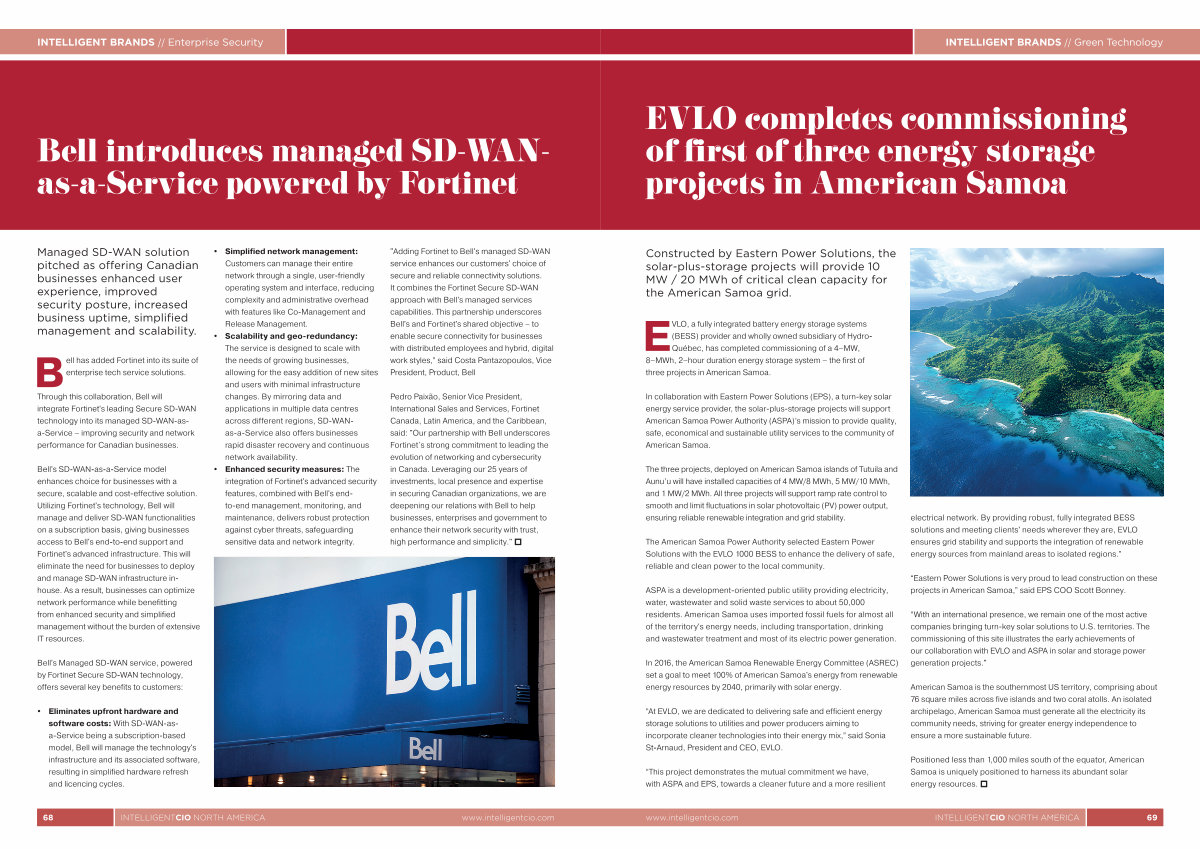EVLO, a fully integrated battery energy storage systems( BESS) provider and wholly owned subsidiary of Hydro- Québec, has completed commissioning of a 4 – MW, 8 – MWh, 2 – hour duration energy storage system – the first of three projects in American Samoa.