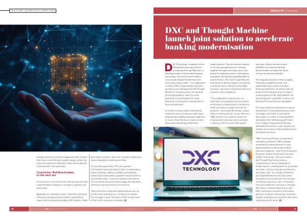 “ With more than 45 years of experience in banking operations, DXC is deeply committed to delivering best-in-class digital solutions to the world’ s leading financial institutions,” said Chris Drumgoole, President, Global Infrastructure Services at DXC Technology.“ Our joint solution with Thought Machine provides a comprehensive, future-ready path to modernization, enabling banks to accelerate innovation, improve operational efficiency, and reduce risk.” As a leader in Banking and Capital Markets technology-driven managed services with over four decades of industry experience, DXC is trusted by financial institutions of all sizes to manage 250 million customer deposit accounts. DXC ' s extensive ecosystem of innovative partners, products, technology, and talent enables seamless processing for 275 million cards daily at 475 banks. p