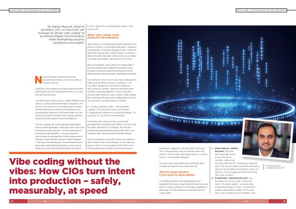Architect, UST, on how CIOs can leverage AI-driven‘ vibe coding’ to accelerate Digital Transformation while maintaining security, compliance and quality.