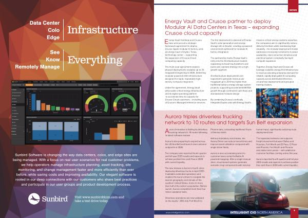 Energy Vault Holdings and Crusoe have announced a strategic framework agreement to deploy Crusoe Spark modular AI factory units at Energy Vault’ s Snyder, Texas, technology center – supporting the expansion of Crusoe Cloud computing capacity.