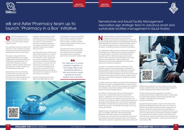 Eng. Ayed bin Awad Al-Qahtani, Chairman of the Board of the Saudi Facility Management Association, said:“ Our mission at SFMA is to set the gold standard for facility management in the Kingdom. By partnering with a global technology leader like Nemetschek, we are ensuring that our professionals have access to the most advanced tools and international expertise available. This collaboration will catalyze innovation, drive research and, most importantly, equip our national talent with the competencies required to manage the Kingdom’ s mega-projects with precision and excellence.” • www. intelligentcio. com