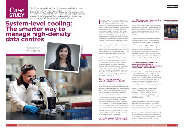 As AI drives unprecedented data-centre demand, cooling is moving from static equipment to dynamic, data-driven service models. Dr Nevin Sant, Vice President, RD & E – Global Light Water Sector, High Tech and Power Industries at Ecolab, explains how Cooling-as-a-Service is reshaping performance, efficiency and sustainability through realtime orchestration of chemistry, mechanics and software.