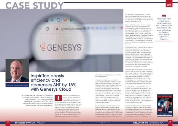 I services provider dedicated to removing barriers for customers and empowering employees, set out to modernise its help desk and contact centre operations to support continued growth. By implementing the Genesys Cloud platform, InspiriTec reduced average handle time by 15 % and cut client onboarding time nearly in half, strengthening operational efficiency while elevating the customer experience. More importantly, the transformation reinforced the organisation’ s belief that technology, when